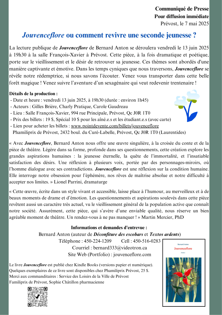 Après le franc succès obtenu lors de la Lecture publique de cette pièce à Montréal (le 30 avril dernier, au Théâtre Ste-Catherine), nous entamons notre tournée dans la province.