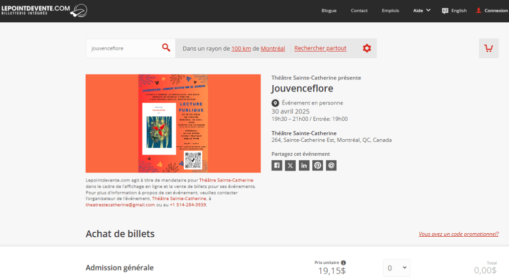 Billets en vente à http://www.lepointdevente.com/billets/jouvenceflore.